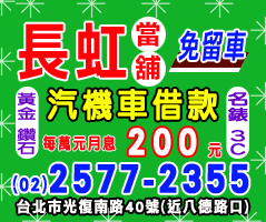 台北市公營當舖,長虹當舖~汽車借款,機車借款,免留車,黃金,